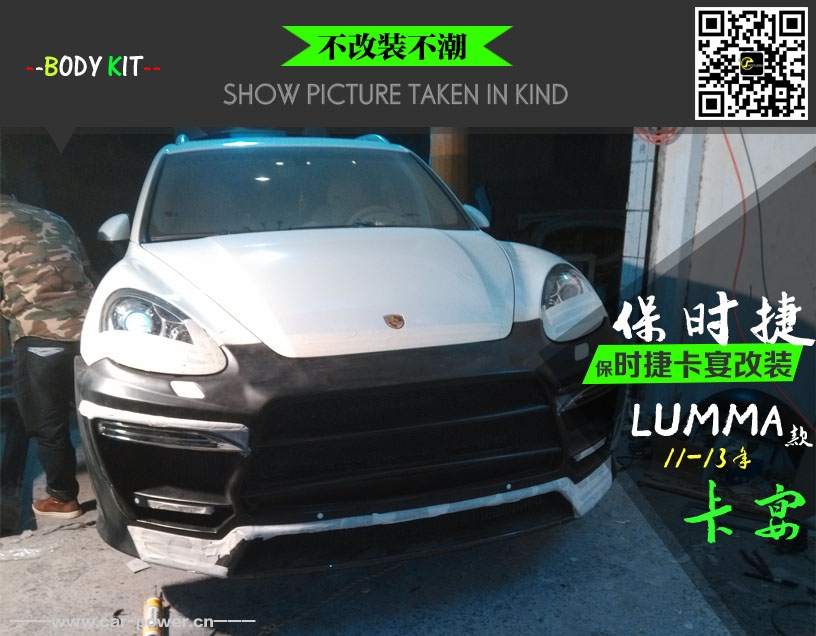 【品 名】:11年保時捷卡宴改LUMMA款大包圍 【材 質(zhì)】:樹脂纖維材質(zhì) 俗稱玻璃鋼 【部 件】:前杠,前杠碳纖后唇,前杠碳纖前唇,前杠碳纖飾條2件,霧燈4件,德國LED燈2件,側(cè)裙一對,輪眉4件,門板2件,門板飾條4件,后杠1件,后杠碳纖飾條2件,尾翼一件。