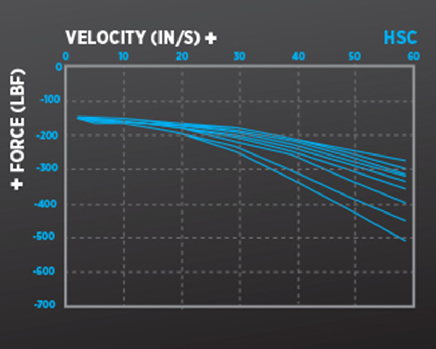 高速調(diào)整模式(HSC)High Speed Compression高速模式旋鈕具有12檔可調(diào)。主要適用懸掛高速運(yùn)動(dòng)和減震器中等壓縮的路況,比如搓衣板路和戈壁沙漠路況。高速模式減震器是屬于高速運(yùn)動(dòng)中等壓縮的檔位,能使汽車在戈壁和搓衣板路路況保持舒適性,以最完美的狀態(tài)順暢的通過(guò)。
