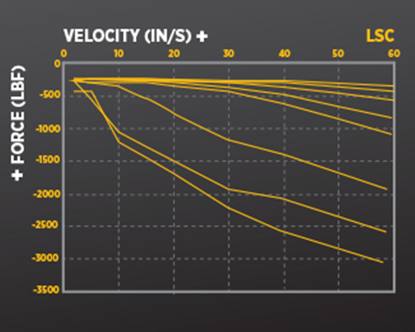 低速調(diào)整模式(LSC)Low Speed Compression 低速模式旋鈕具有10檔可調(diào)。主要適用懸掛運(yùn)動(dòng)緩慢和減震器極限壓縮的路況,比如攀爬,經(jīng)過(guò)調(diào)整后可以實(shí)減震器阻尼變大,讓車的穩(wěn)定性和操控性保持在最佳狀態(tài)。低速模式第四檔模式為特別針對(duì)Teraflex黑牌長(zhǎng)臂懸掛套件定制檔位。