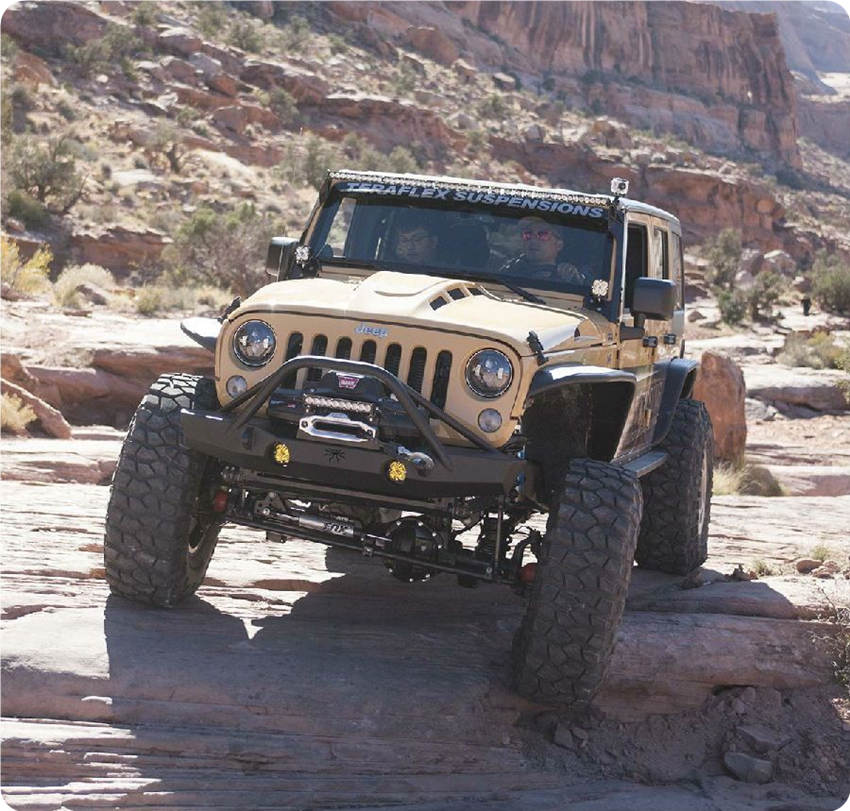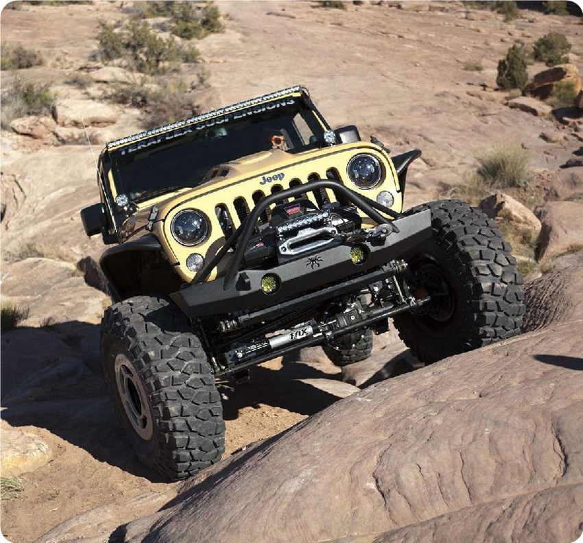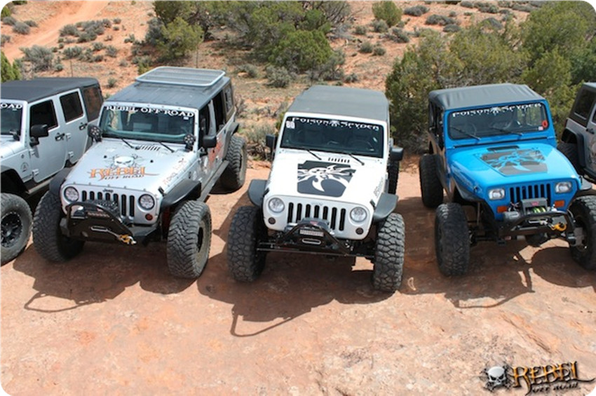穿越車會(huì)2013年征戰(zhàn)美國MOAB的6.4L HEMI牧馬人就選用了Poison Spyder的全套前后杠和輪眉