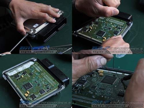 電腦拆開,讀取原車數(shù)據(jù)。此款高爾夫是BDM模式操作,需要把電腦開殼。