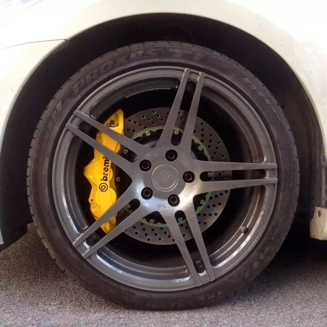 俗話說魚與熊掌不能兼得,G37擁有炫酷的外形,充沛的動力,但日系車的剎車疲軟一直是大多數(shù)車主比較不滿的地方,剎車主要關(guān)乎到生命的安全.所以這次為了最大限度的解決這個問題,有效提升制動力決定直接上了這套國內(nèi)外都有口皆碑的BREMBO GT的剎車套件。不僅解決了剎車疲軟抖動的問題,視覺效果也得到極大的提升絕對的很黃很暴力。