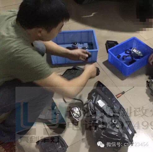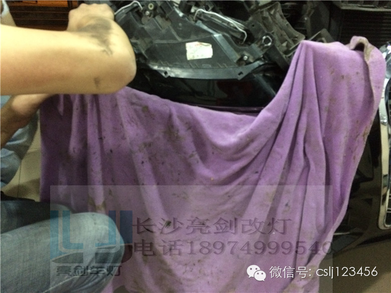 為了避免大燈拆裝時,車身前杠油漆被刮花,師傅們細心的鋪上了厚毛巾,保證每個細節(jié)都萬無一失!
