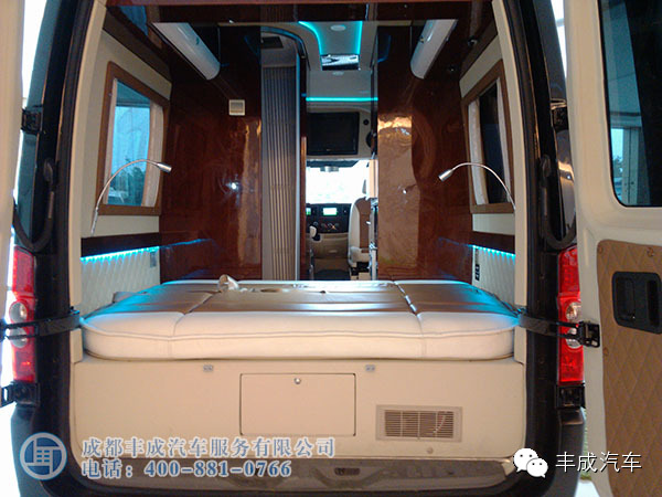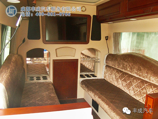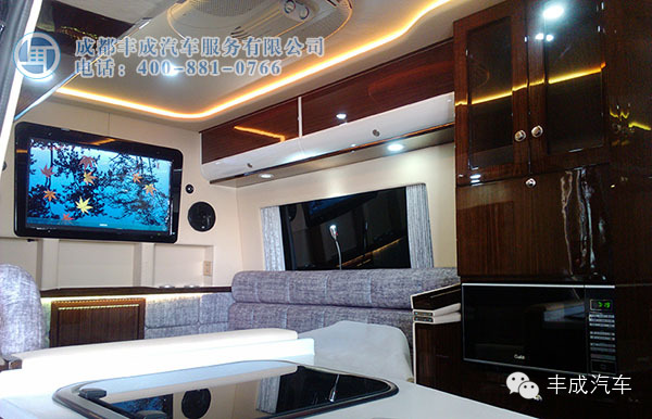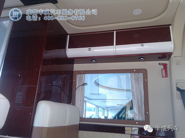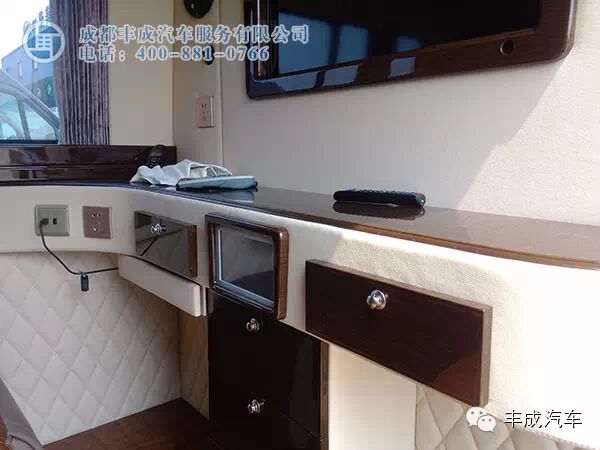 這款車的設(shè)計采用的是全隔斷配上可升降電視、吧臺、儲物抽屜、安尼卡系統(tǒng),讓辦公娛樂更貼心!