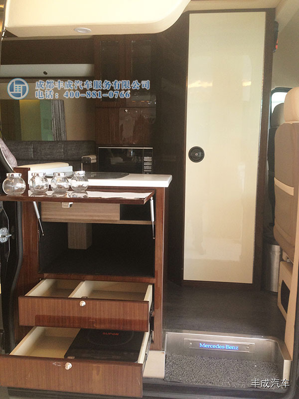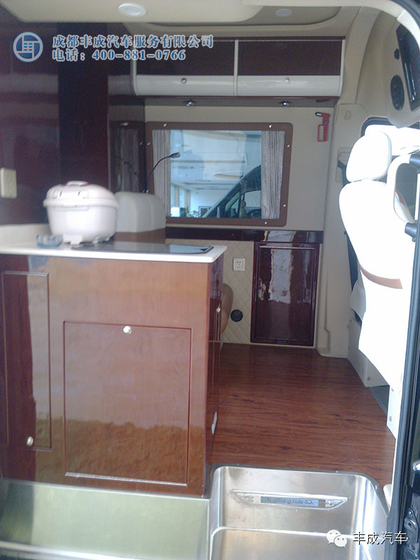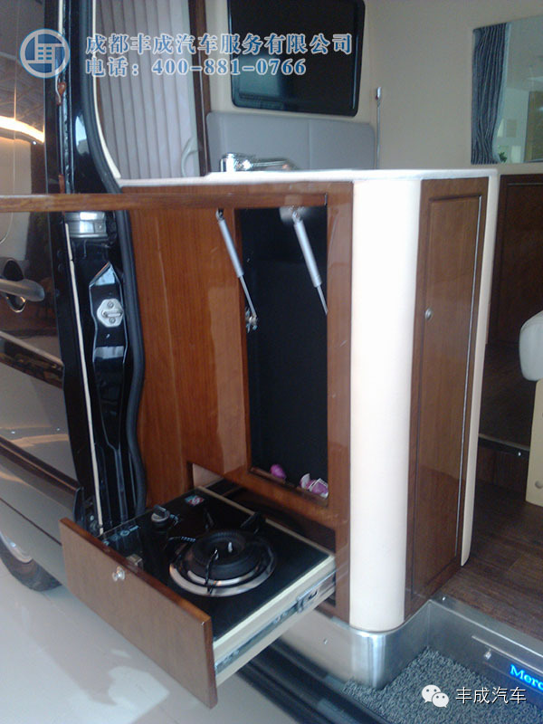 斯賓特休閑商旅車 微信號 fengchengqiche王總的第二輛車,布局與第一輛類似,中門商務(wù)洽談區(qū),尾門廚臺。王總個人喜好喝茶,便在這輛車上加裝了茶桌。廚臺安置在車尾,油煙就更好控制了,這樣布局尾門車頂須加裝遮陽棚,不然下雨天或大太陽很上火。加裝尾門遮陽簾就必須舍棄掉倒車投影,魚和熊掌不能兼得,王總最終還是選擇了遮陽棚。進口斯賓特確實有很好的地方,汽油自動擋,定速巡航開車不累。電動門、無鑰匙啟動方便。前照燈清洗,后視鏡加熱……很實用的功能。