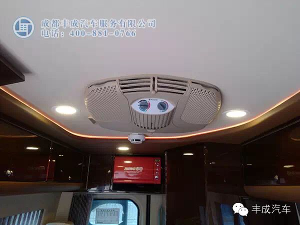 車頂安置了非常實用的駐車空調(diào),加裝的電池可以供空調(diào)駐車使用一晚上。