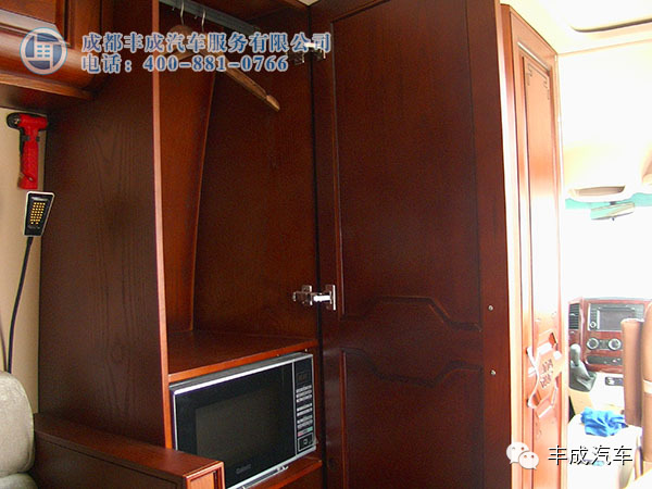 車尾柜子里放置外接絞線盤和發(fā)電機,中部橫置床可以給小孩子休息。
