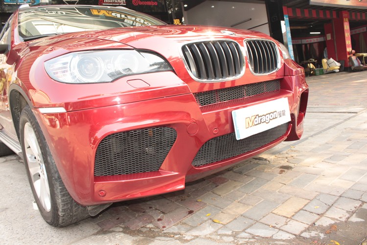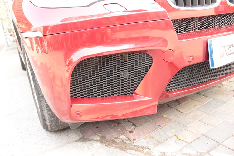 X6M所裝備的M套件并不是只為了視覺(jué)效果,實(shí)際上也都是針對(duì)高性能而設(shè)計(jì),例如車頭的保險(xiǎn)杠,取消了普通版上的霧燈設(shè)計(jì),全都改為大面的通風(fēng)口,并且我們能看到中間以及兩側(cè)的中冷裝置,如此強(qiáng)大的增壓發(fā)動(dòng)機(jī)當(dāng)然也需要強(qiáng)大的散熱系統(tǒng)。另外兩側(cè)輪拱的地方也并不是封死的,而同樣是留有通風(fēng)口,用來(lái)輔助剎車系統(tǒng)散熱。