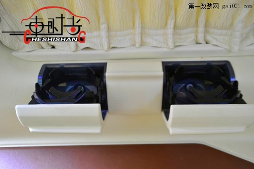 車載冰箱后部設(shè)置了杯架和儲(chǔ)物空間,4顆金屬按鈕可以直接控制車內(nèi)燈飾的開關(guān)
