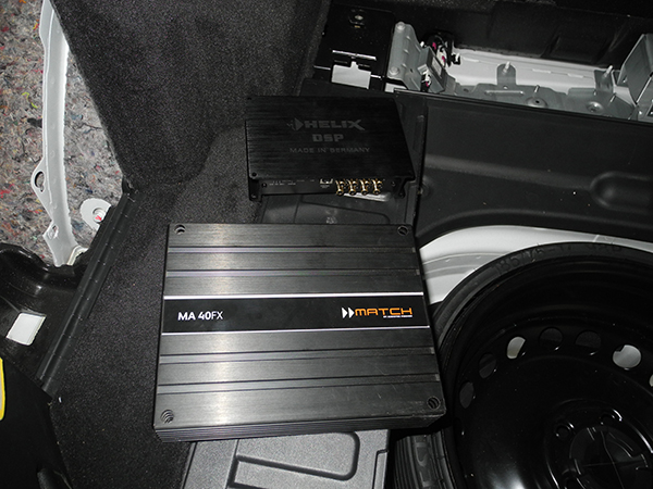 喜力仕DSP音頻處理器、麥?zhǔn)薓A 40FX功放、麥?zhǔn)薓A 10FX放置于后尾箱位置