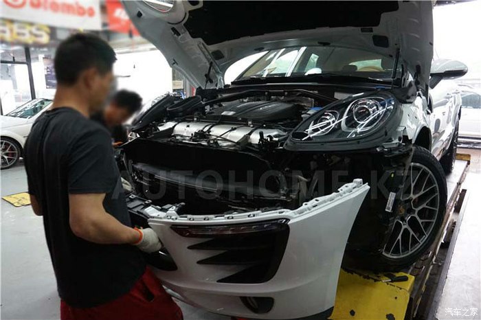 一會(huì)就把前保給取下了,他們說(shuō)這個(gè)比卡宴簡(jiǎn)單些