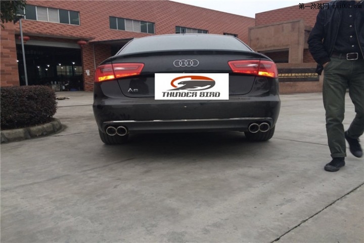 13款奧迪A6L 升級換裝雷鳥中尾四出排氣管,成都下雨沒有洗車,大家將就看咯
