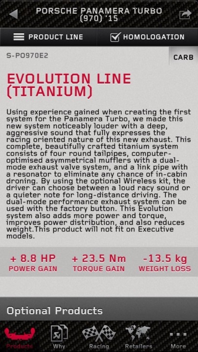 Porsche panamera升級(jí)Akrapovic天蝎排氣,鈦合金材質(zhì),碳纖維尾嘴,比原廠排氣提升8.8匹馬力,增加23.5扭扭矩,減輕排起重量13.5KG