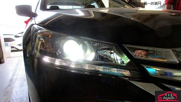 【本田雅閣9代】深圳汽車改燈-拆車海拉5雙光透鏡,車爵仕專業(yè)燈光音響改裝升級(jí)。 【改燈車型】本田雅閣9代 【改燈前近光】H11氙燈 【改燈前遠(yuǎn)光】HB3鹵素?zé)? 【改燈配置】海拉5雙光透鏡+電裝安定器+巖琦D2S5500K氙燈+ ...