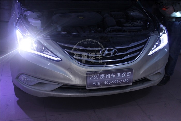 索納塔八升級(jí)大燈總成。原車(chē)燈為鹵素?zé)艄?,現(xiàn)車(chē)港為其升級(jí)為近光燈為高亮度Q5光型雙光透鏡,遠(yuǎn)光燈為獨(dú)立鹵素遠(yuǎn)光透鏡,高亮度LED淚眼日行燈,小燈轉(zhuǎn)向變 黃。 ...
