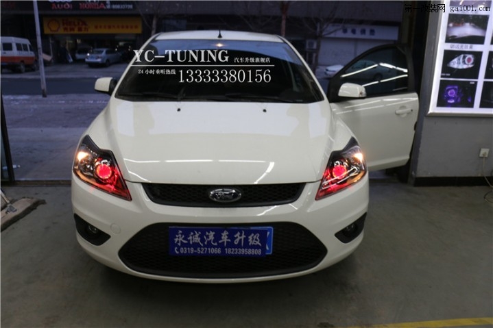 石家莊專業(yè)改燈店,經(jīng)典福克斯升級氙氣大燈 改燈配置:Q5透鏡 + 歐司朗4300K氙氣燈 + 歐司朗安定器 + 紅色惡魔眼