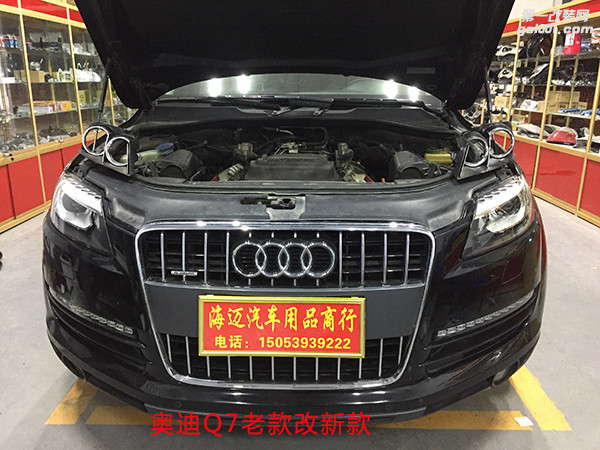 07年老款V8引擎4.2排量Q7原車大燈不帶日行燈不夠靚,為節(jié)約成本直接移植新款大燈內(nèi)膽,換完中網(wǎng)直接變成12款?yuàn)W迪Q7