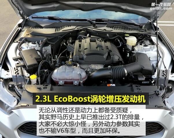 如果你有心打開野馬2.3T的發(fā)動機機艙內(nèi)部,可以看出這么一個小小的四缸發(fā)動機裝在野馬里面,發(fā)動機艙顯得很空曠。這個原因之一是因為野馬的車頭不是專為四缸發(fā)動機設(shè)計的,它還要有足夠空間擺下V6和V8發(fā)動機(還有機 ...