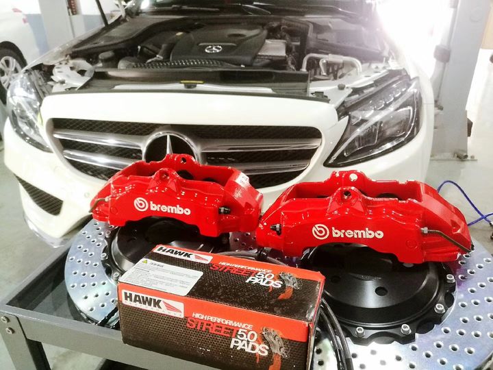 奔馳C200剎車升級意大利Brembo大六活塞、搭配美國HAWK 5.0剎車皮,好剎少粉、低噪音、頭段咬合力更強 衛(wèi)星:a6322575
