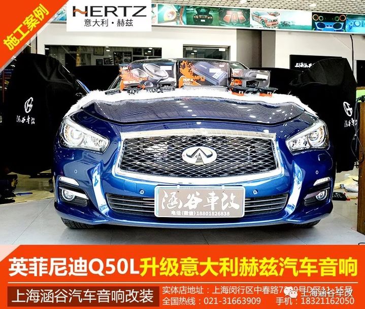 【上海涵谷車改】英菲尼迪Q50L改意大利赫茲汽車音響ESK165三分頻、赫茲DCX165同軸、HCP4四路功放、ES250超低音   ...