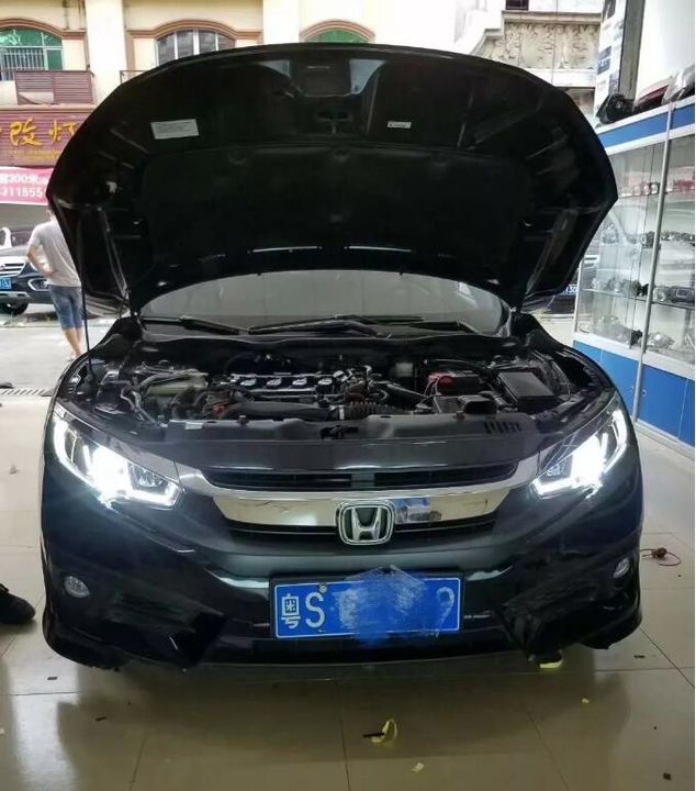 本田思域車燈升級改裝雙U日行燈+GTR雙光透鏡+漢雷5500K氙氣燈+海藍星安定器