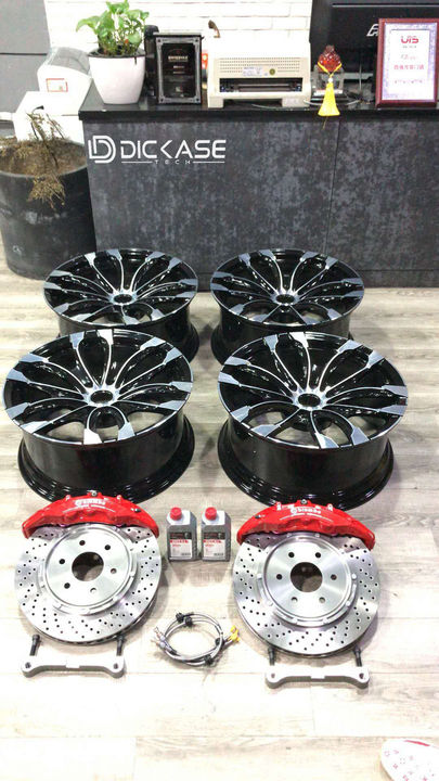 改裝清單:brembo競技六活塞卡鉗DICASE 380mm分體盤DICASE 專用合頭螺絲DICASE 航空鋁定制合頭橋位DICASE-HP2000剎車皮goodridge鋼喉、brembo5.1剎車油