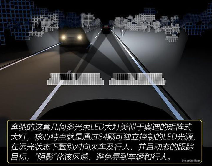 (邁卡庫改裝小銳分享:13129565877) 新款奔馳GLE的高配幾何多光束大燈擁有2個透鏡,屬于智能幾何多光束大燈。功能有:1.啟動車輛有自檢功能,2.自適應遠近光燈(前提實現(xiàn)這個功能需要 ...