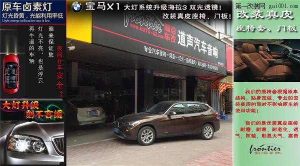 寶馬X1大燈沒有天使眼??!這個(gè)問題在每個(gè)寶馬車主的心里都不是個(gè)滋味!十分郁悶!沒有天使眼,怎么能叫寶馬呢?奔跑起來毫無氣魄!而且燈光亮度也是個(gè)問題,原車反光碗式鹵素?zé)?,鹵素車燈先天亮度不足,使得整體的照 ...