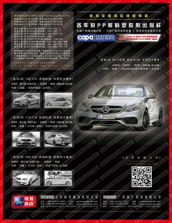 正文摘要:本公司主營臺灣進(jìn)口: 空力套件,中網(wǎng),尾翼,排氣,機(jī)蓋,尾燈,等。 寶馬:X1,1系,3系,5系 奔馳:C級,E級,S級,G級 其它:CTS,ISF,300C,大黃蜂,高爾夫,語燕,天語,翼神EVO,等 聯(lián)系電話:15521052311 ... |