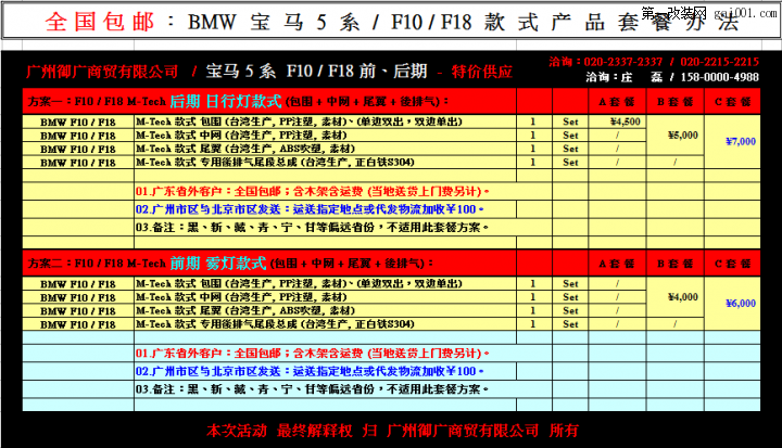 本公司主營臺灣進口:空力套件,中網(wǎng),尾翼,排氣,機蓋,尾燈,等。 寶馬:X1,1系,3系,5系 奔馳:C級,E級,S級,G級 其它:CTS,ISF,300C,大黃蜂,高爾夫,語燕,天語,翼神EVO,等file:///C:\Users\ADMINI~ ...