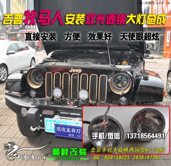 吉普牧馬人升級海拉3雙光透鏡大燈總成 北京波波改燈 無需改線 直接對插無破壞的原裝位改裝即可擁有高配車氙氣燈的外觀和高亮燈光電話:13718564491QQ:393226128 本店市面上有的透鏡基本上 ...