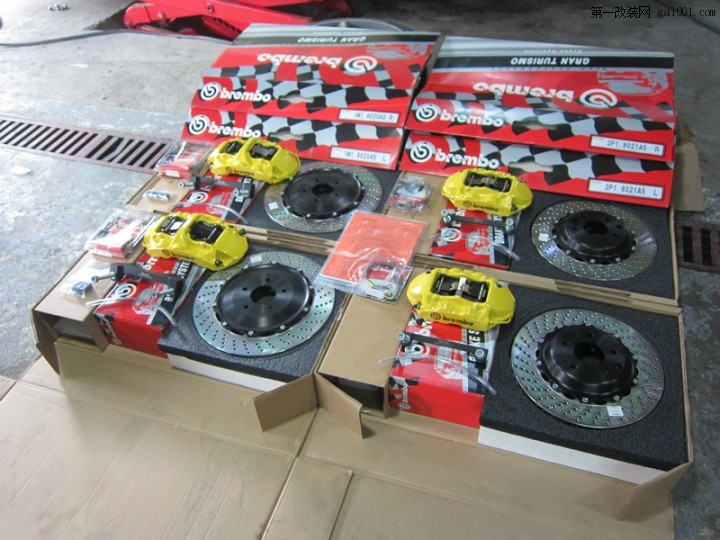 英菲尼迪G37升級Brembo GT全原裝剎車套裝。前六活塞380碟,后四活塞345碟。