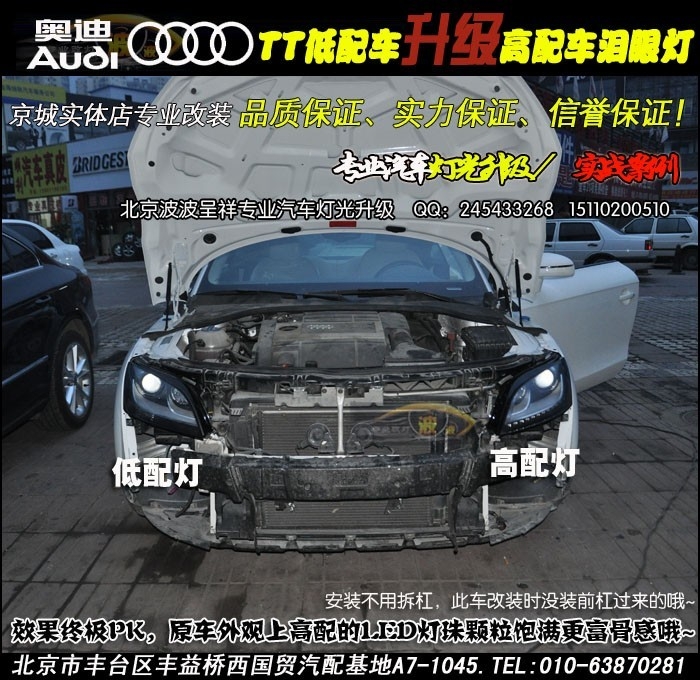 奧迪TT低配升高配淚眼大燈 北京波波專業(yè)燈光升級 無需改線,直接對插。無破壞的原裝位改裝,波波呈祥專業(yè)改燈為您照亮回家的路 電話:15110200510 QQ:245433268 ...