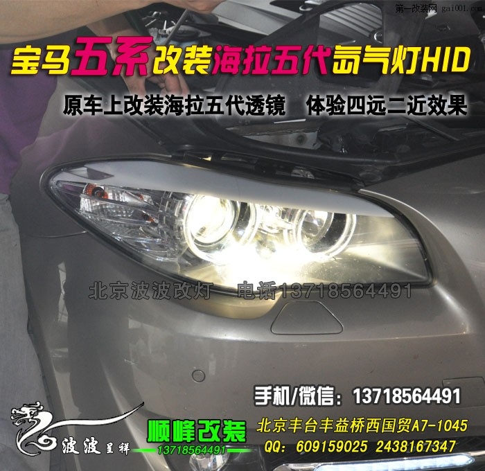寶馬5系改裝海拉5代透鏡氙燈 北京西國貿(mào)改燈 電話;13718564491 QQ;393226128 無需改線,直接對插。無破壞的原裝位改裝波波呈祥專業(yè)改燈,為您照亮回家的路。 ...