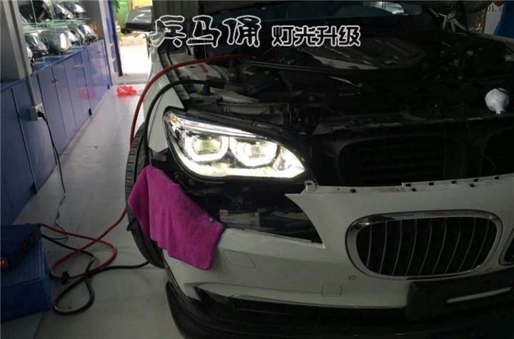 宿遷淮安寶馬7系改燈730740升級(jí)高配全LED大燈總成 11款寶馬7系(740 730)改頂配全LED大燈總成。近遠(yuǎn)光、天使眼光源皆為高亮度LED。換裝之后整個(gè)車的未來(lái)感、科技感躍然紙上啊,車主換裝后嘖嘖稱贊。 淮安寶馬改燈大 ...